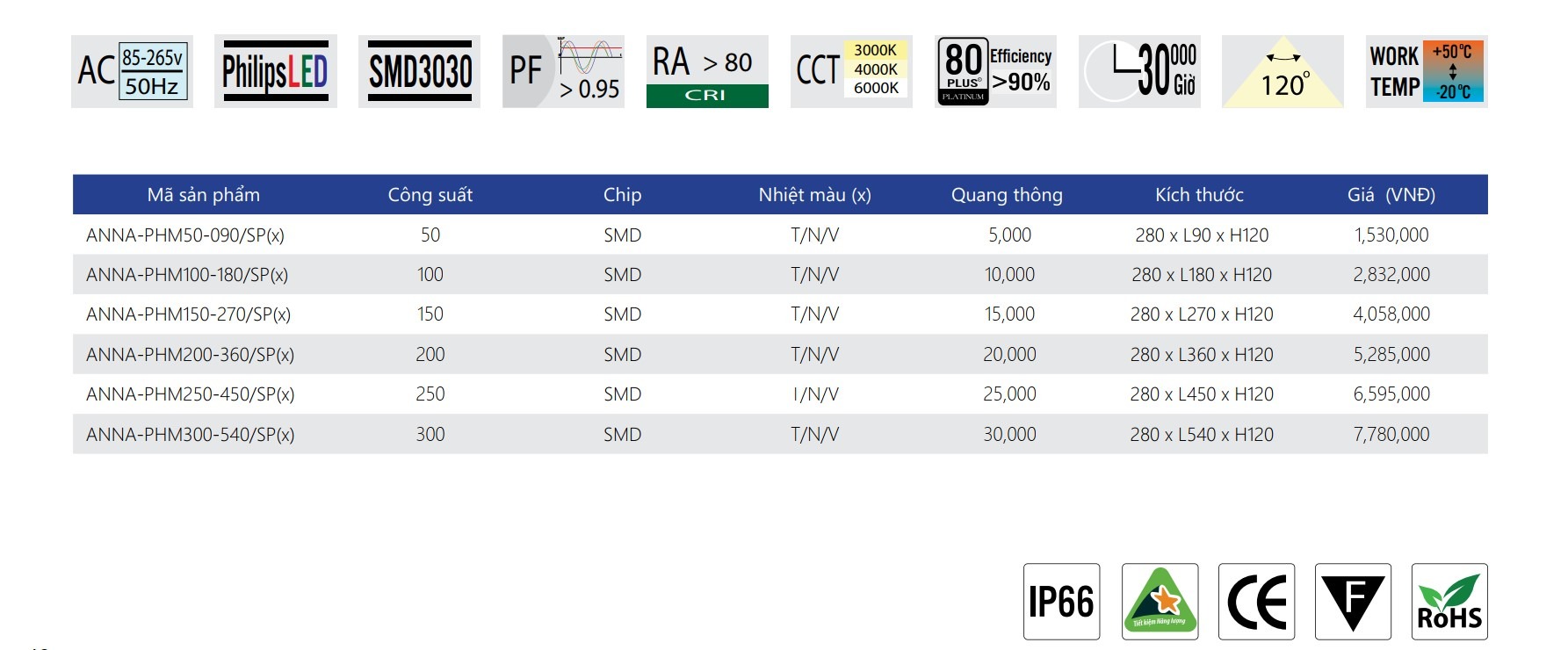 Philips SMD 3030, tuổi thọ trên 30.000 giờ.