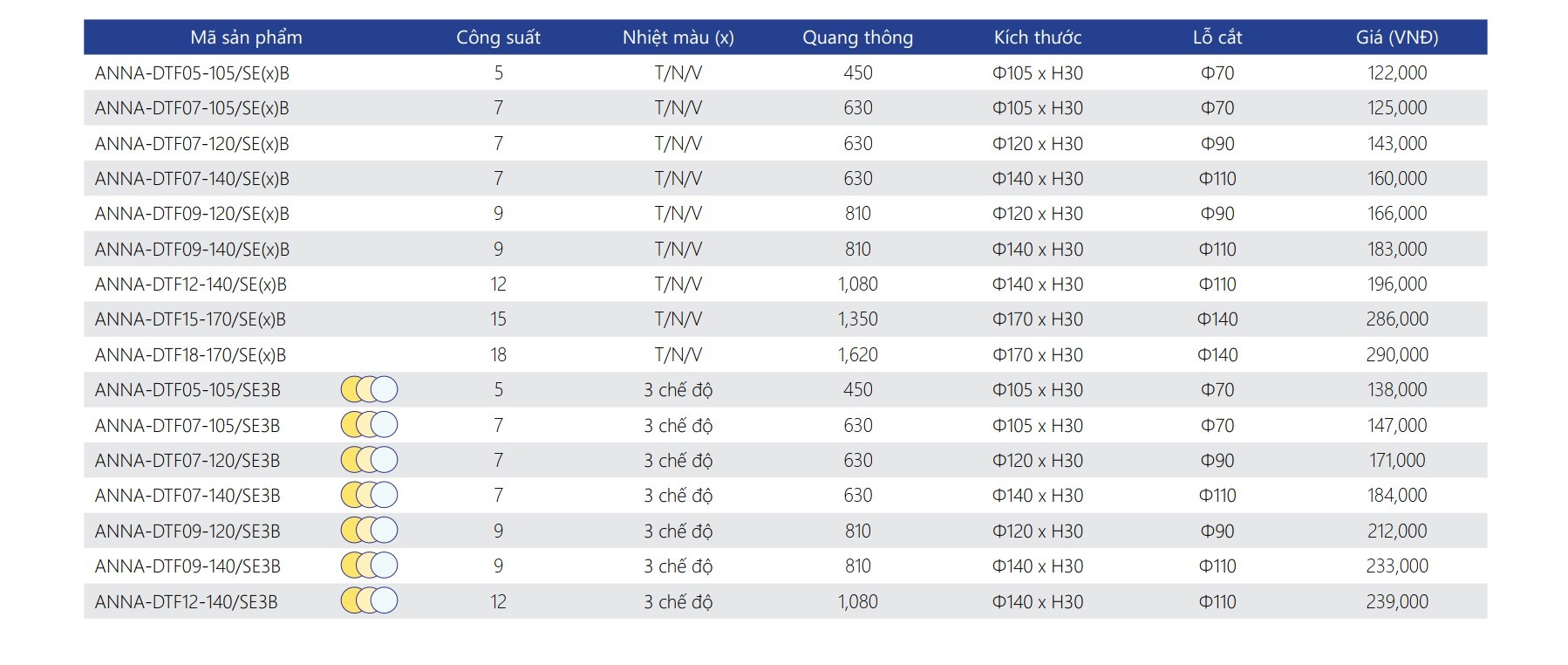 Epistar SMD 5730 (Đài Loan), tuổi thọ 30.000 giờ.