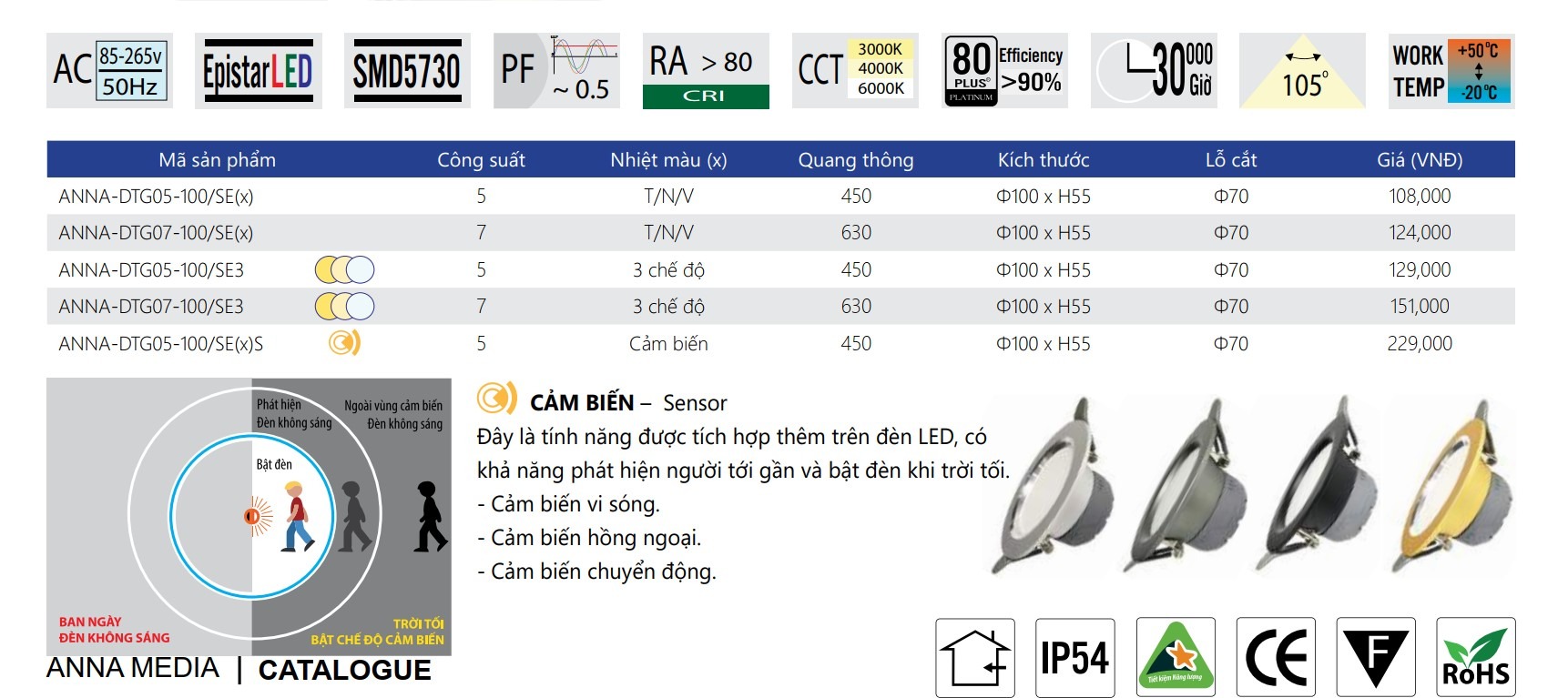 Epistar SMD 5730 (Đài Loan), tuổi thọ 30.000 giờ.