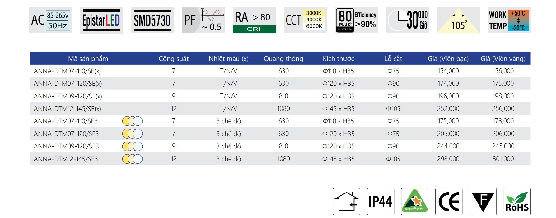 Epistar SMD 5730 (Đài Loan), tuổi thọ 30.000 giờ