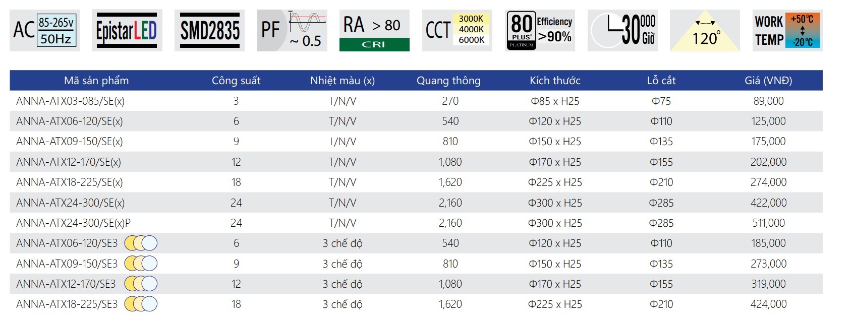 Đèn LED âm trần tròn siêu mỏng mẫu ATX